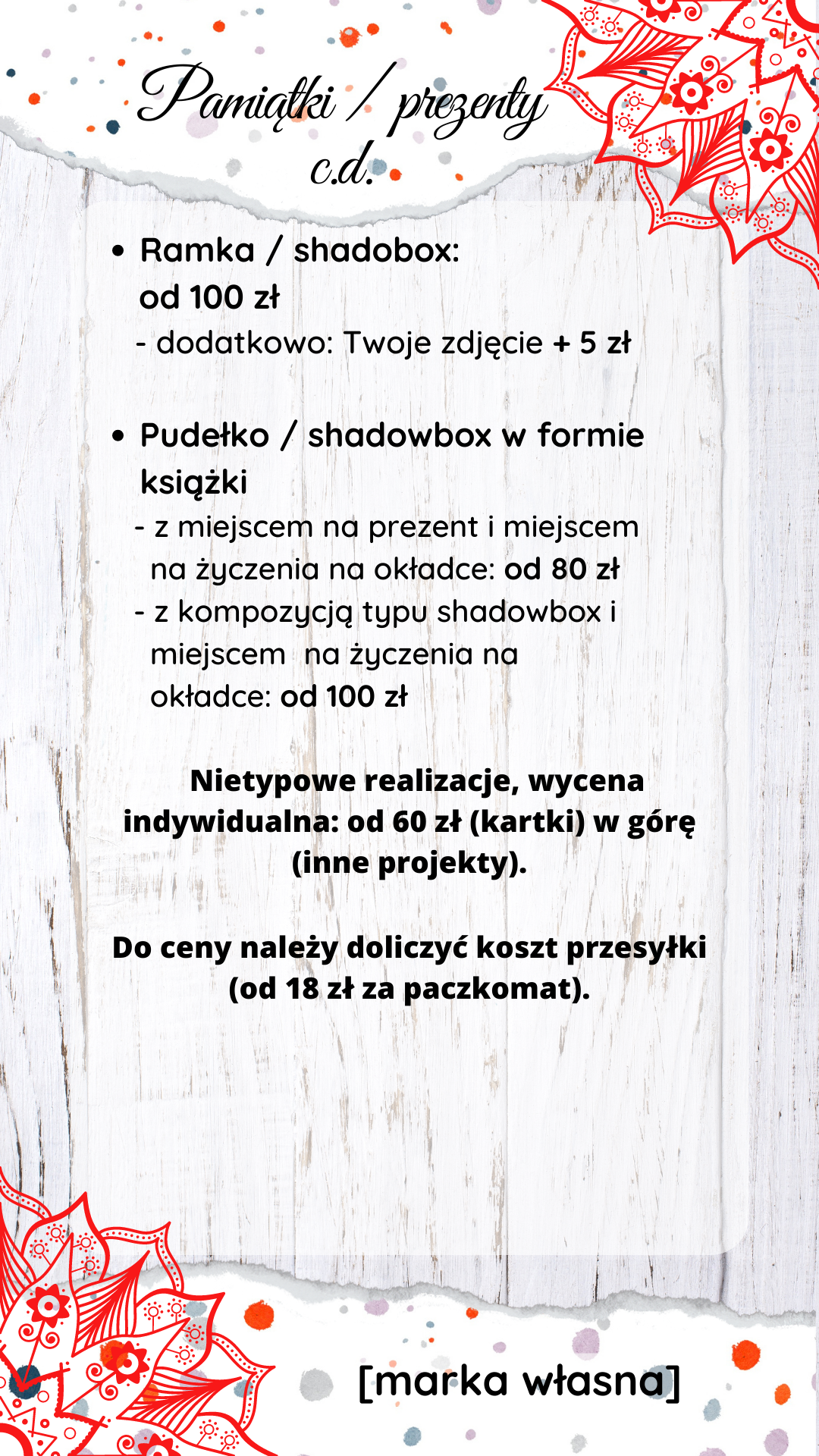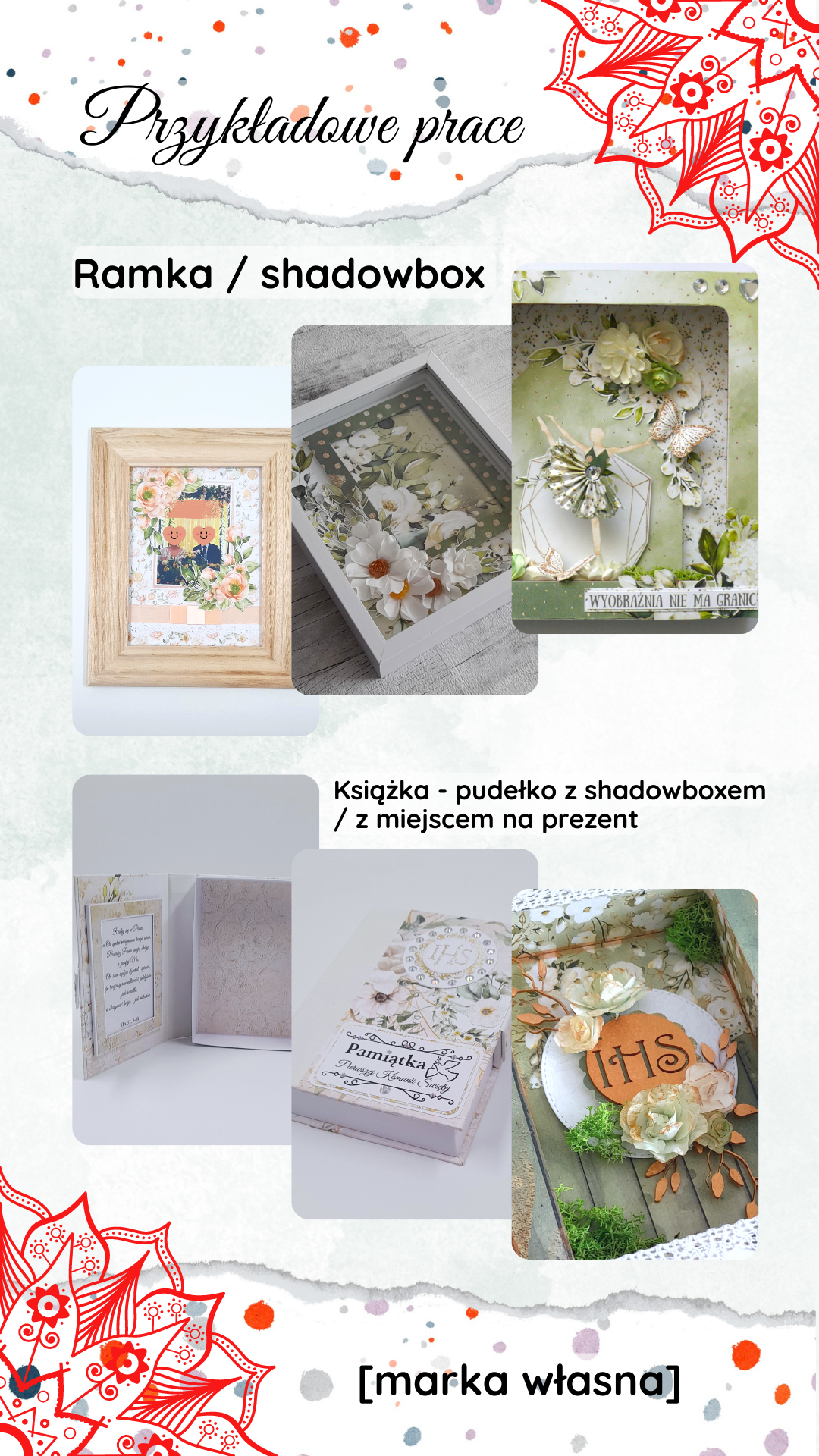 - ramki / shadowboxy z kompozycją i / lub miejscem na zdjęcia (od 100 zł).