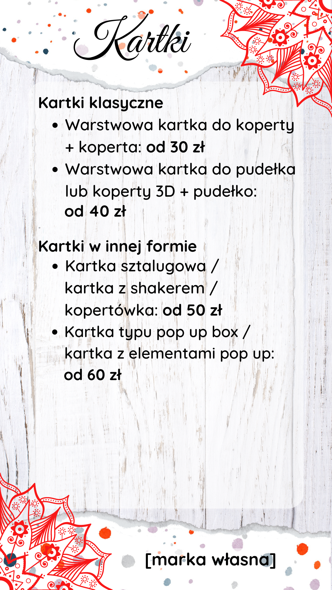 – do koperty (od 30 zł) lub do pudełka (od 40 zł);