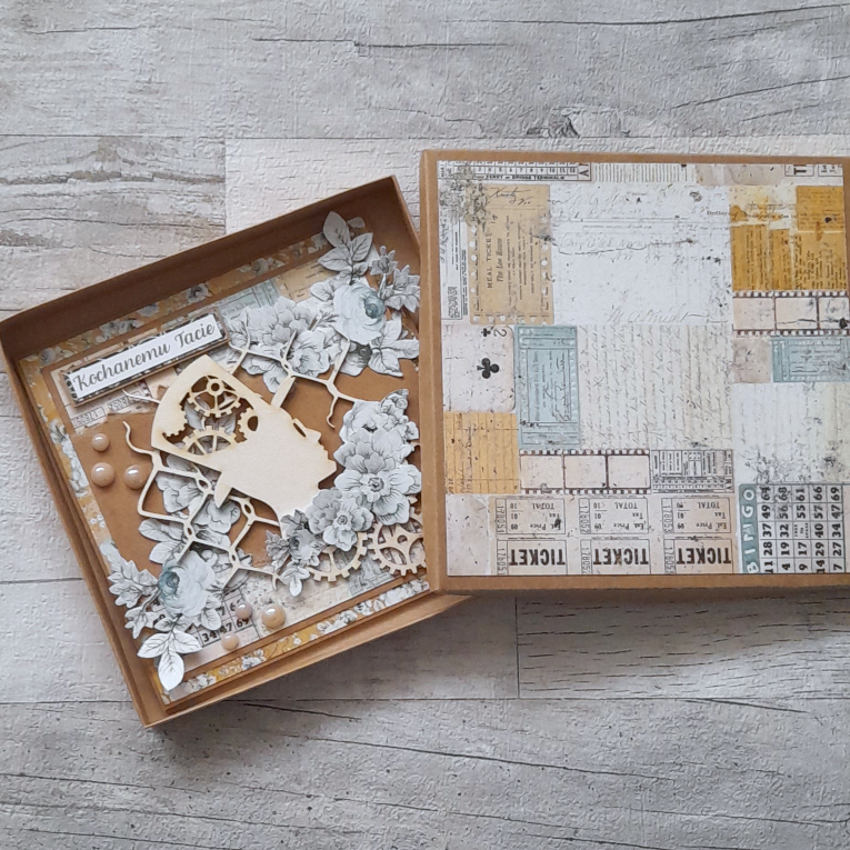Boxa okleiłam pięknymi papierami scrapmasowymi od Tosi i ozdobiłam grafikami od Artemisji – wszystko wydrukowałam na papierze satynowanym. To dowód na to, że jeśli nie ma się się papieru scrapowego w domu, ale ma się za to dobrą drukarkę – to i papier można wyczarować.